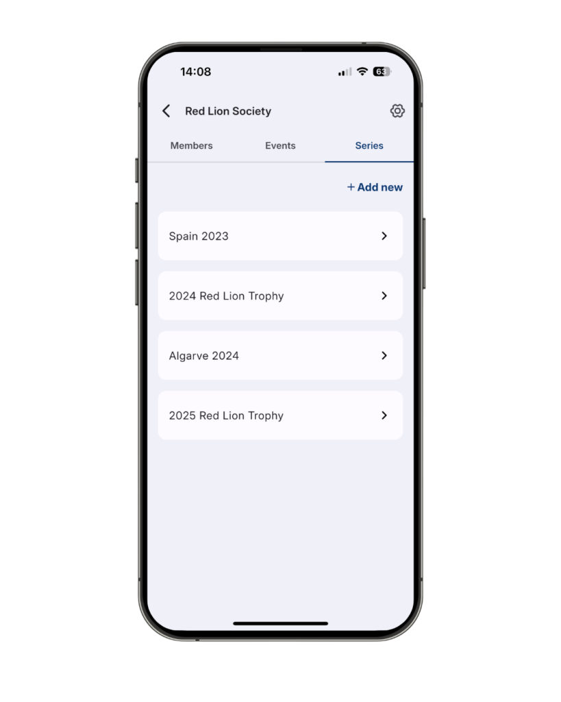 Once you’ve created a new series for your group, any new event can then be added to the series. You can also have multiple series per group, so it could be your annual season-long competition, alongside another two-day event or a long-weekend trip. It can become the home of all your group golf, making it easier to look back at the winners (and losers!) from previous years and competitions.